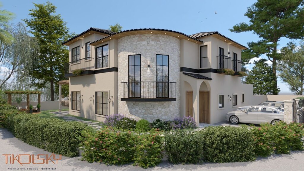 הגענו לשלב התכנון, המגרש הוא פינתי, ולכן החלטנו ביחד על עיצוב עגול של קיר החזית, בתוך הבית, בצמוד