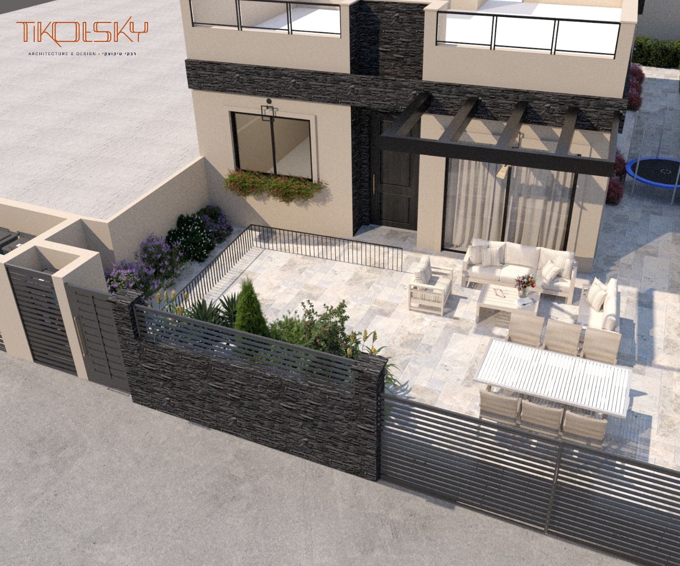 היה לי חשוב לשלב אלמנטים של האזור הטופוגרפי ולכן השתמשנו באבן בזלת לחיפוי, ויצרנו מדרגות עליה